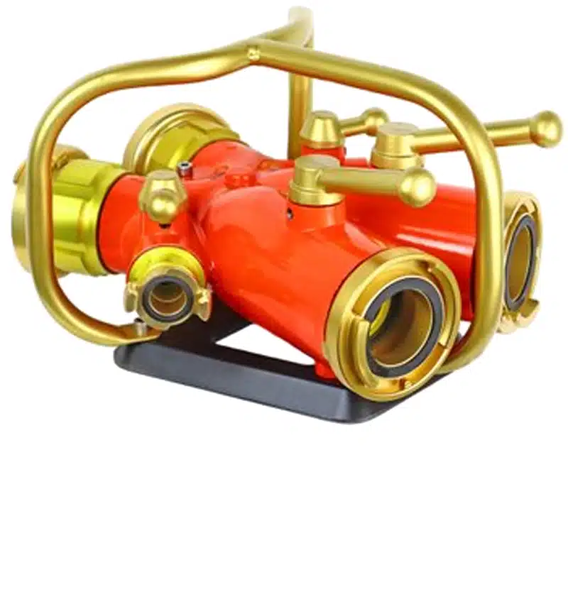 Detta grenrör, även kallat kyrka, används främst inom brandsläckningssystem, räddningstjänst, industri och byggarbetsplatser där flera vattenflöden behöver fördelas samtidigt. Tack vare sina flera utlopp med separata kulventiler kan vattnet enkelt styras till olika slangar eller utrustning vid behov.