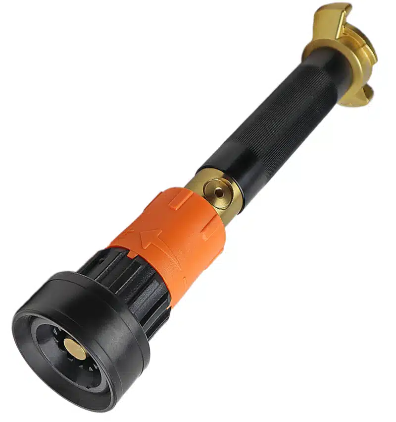 Detta spolmunstycke med klokoppling 32 är särskilt utvecklat för användning vid skogsbränder, industriella miljöer och byggarbetsplatser. Tack vare sin ringa vattenförbrukning på endast 75 liter per minut ger det en jämn, kraftfull vattenstråle utan onödigt spill. Munstycket lämpar sig för både spolning och dimspridning och är enkelt att manövrera med vridreglage för avstängning, öppning och strålreglering.